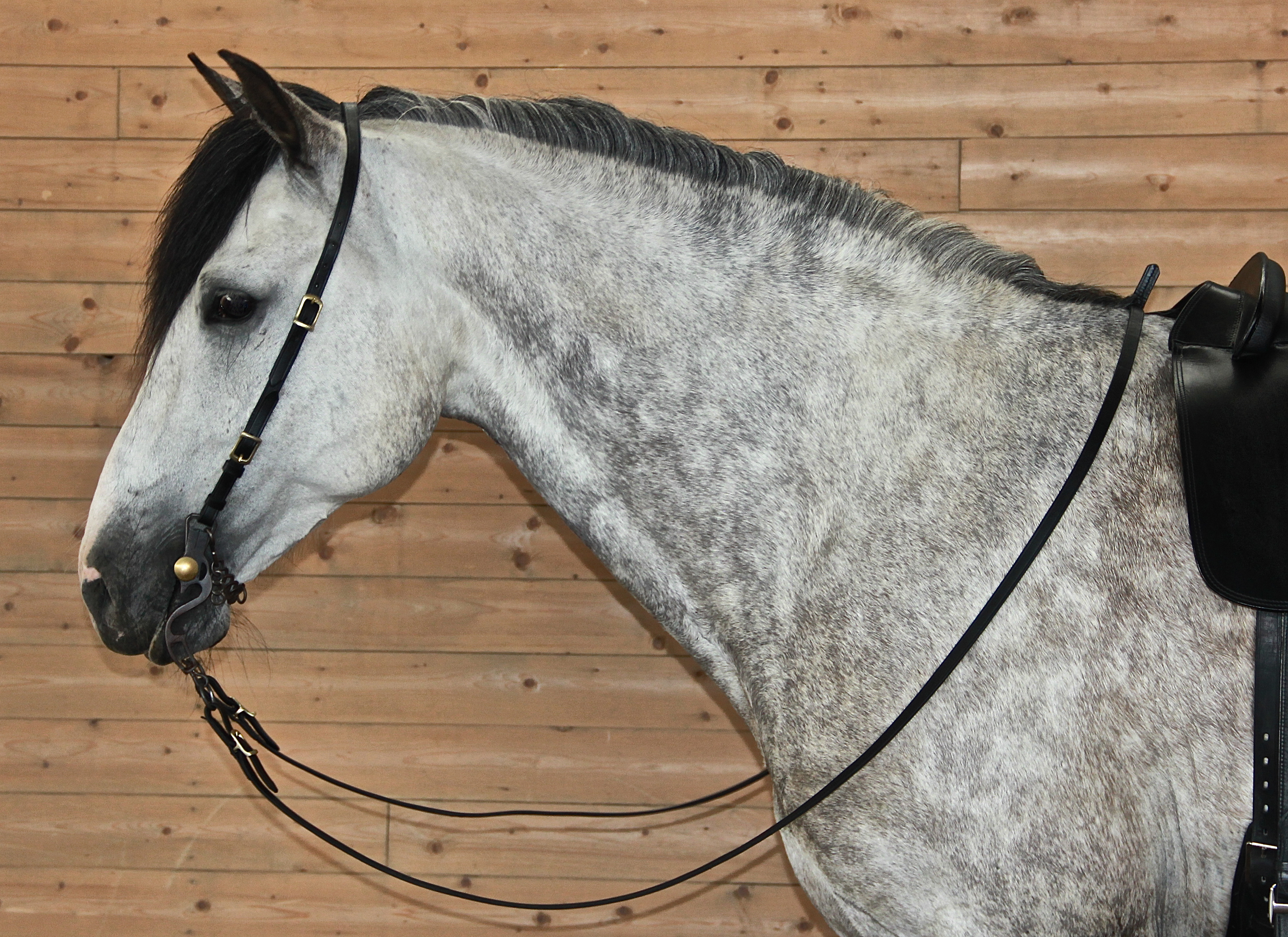 En slät lädertygel som är lite längre än standard; 310 cm. I mitten är tygeländarna hopsydda mot varandra. Det syftar både till att göra åtskillnad mellan tyglarna och till att göra det enklare att justera tyglarna i handen. För att ytterligare göra det enklare att se skillnad på stångtygeln och kapsontygeln är stångtygeln lite smalare; 14 mm. Svart läder. Välj mellan spännen i rostfritt eller mässing.